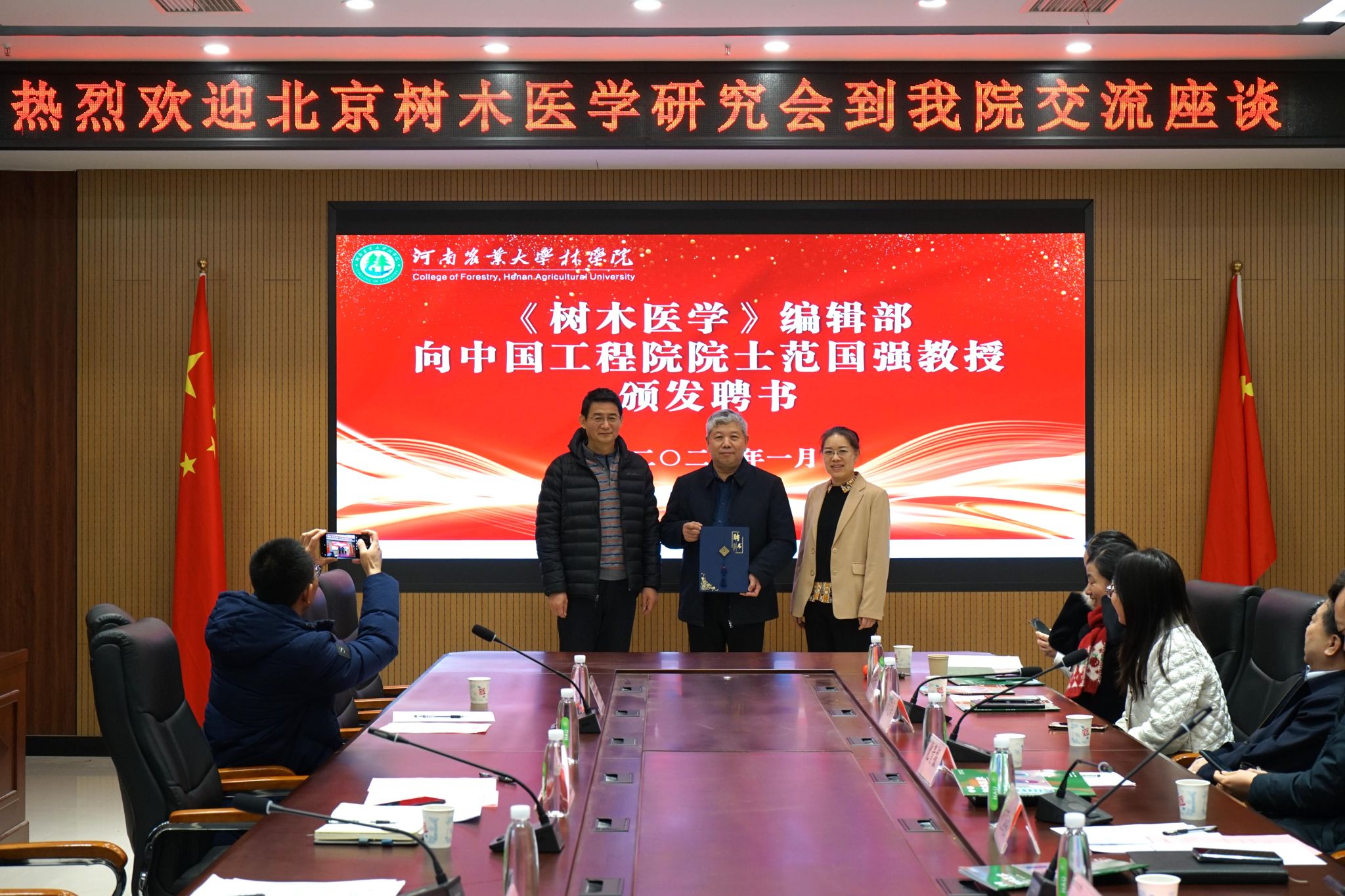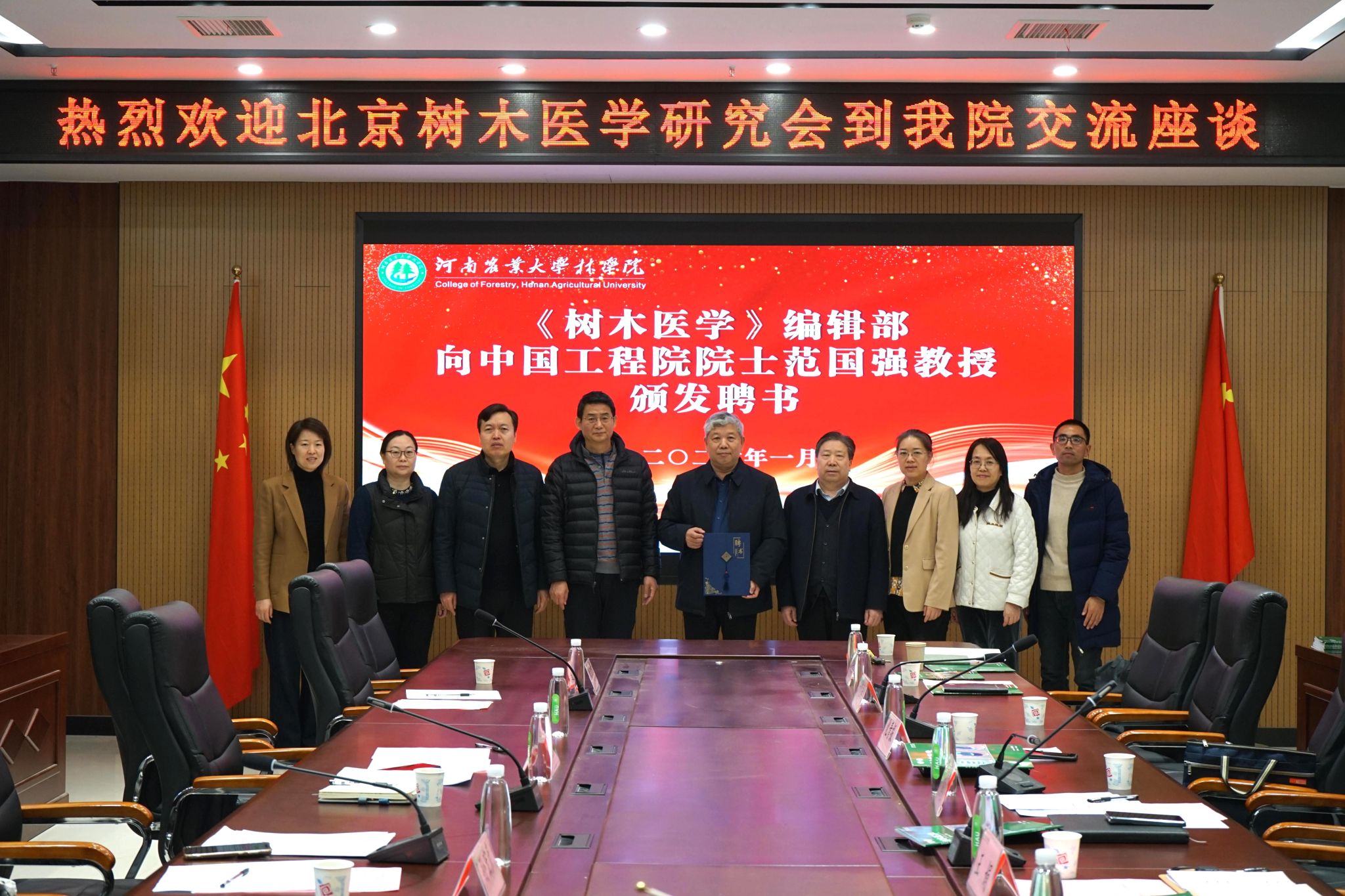 《树木医学》编辑部向中国工程院院士范国强教授颁发副主任聘书并合影留念。