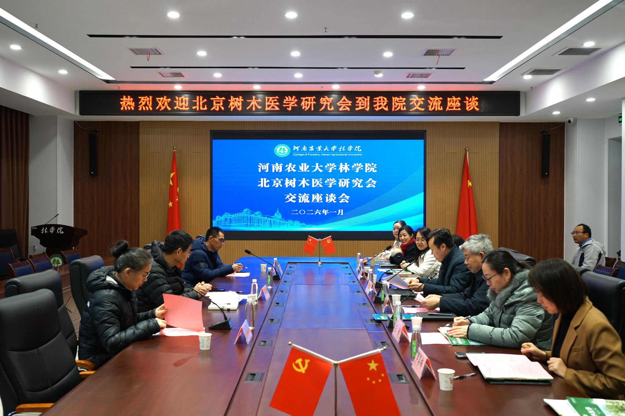 开展交流座谈,会议于力行楼-南-231举行。院党委书记化青报,中国工程院院士、院长范国强,河南省林学会副理事长尚忠海,院党委副书记王娟,副院长张学芳、李喜梅参加座谈会。会议由化青报主持。